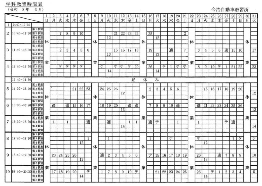 休業日は、学科時限表で確認してください。 |