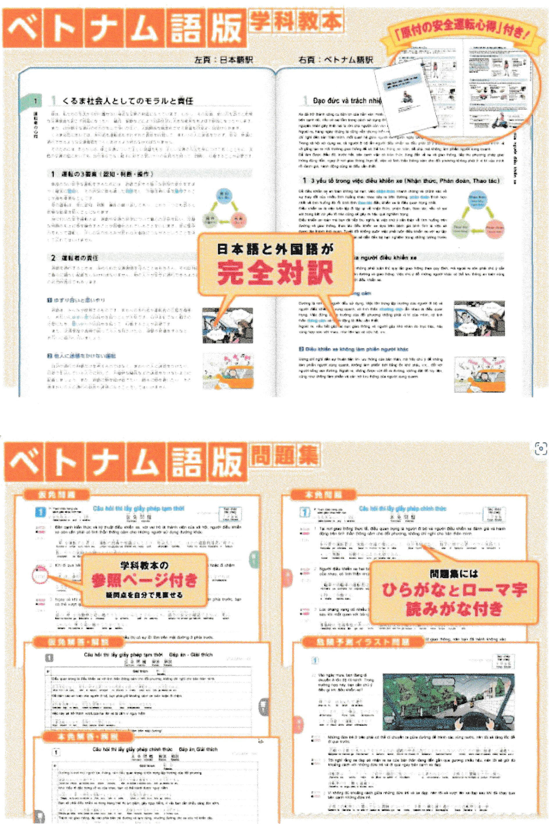 学科教本は、日本語と外国語が完全対訳され、問題集がついています。